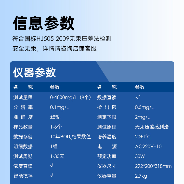 1、無汞測定BOD,對人和環境無害